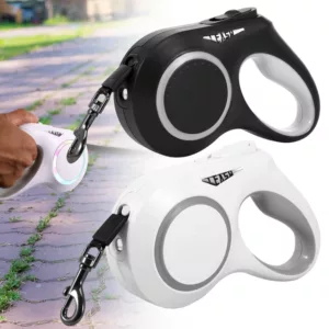 Correa retráctil con linterna y luces led multicolor para uso de niños y adultos es una opción fuera de lo común para los paseos nocturnos y que tu mascota sea el centro de atención ante las miradas de los demás.